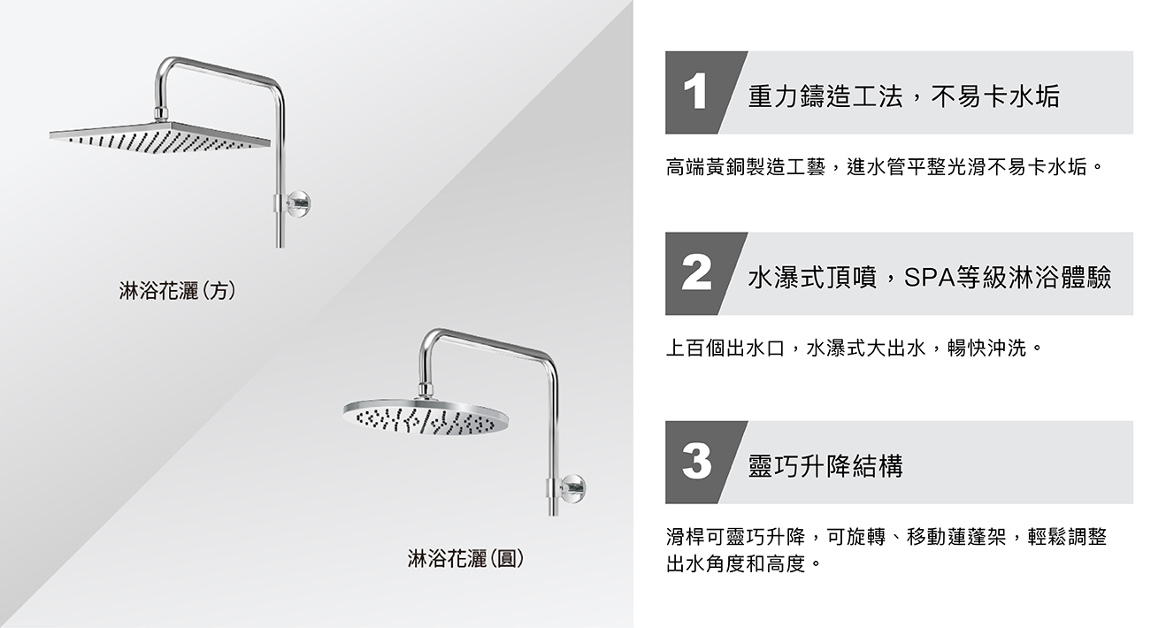 採用重力鑄造工法,進水管平整光滑、不易卡水垢,確保