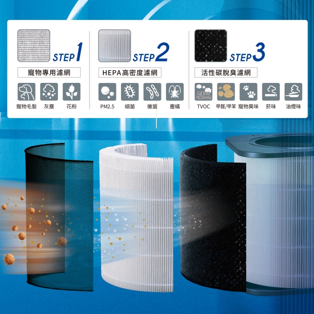 ▶ 攔截大型灰塵、寵物皮屑及毛髮