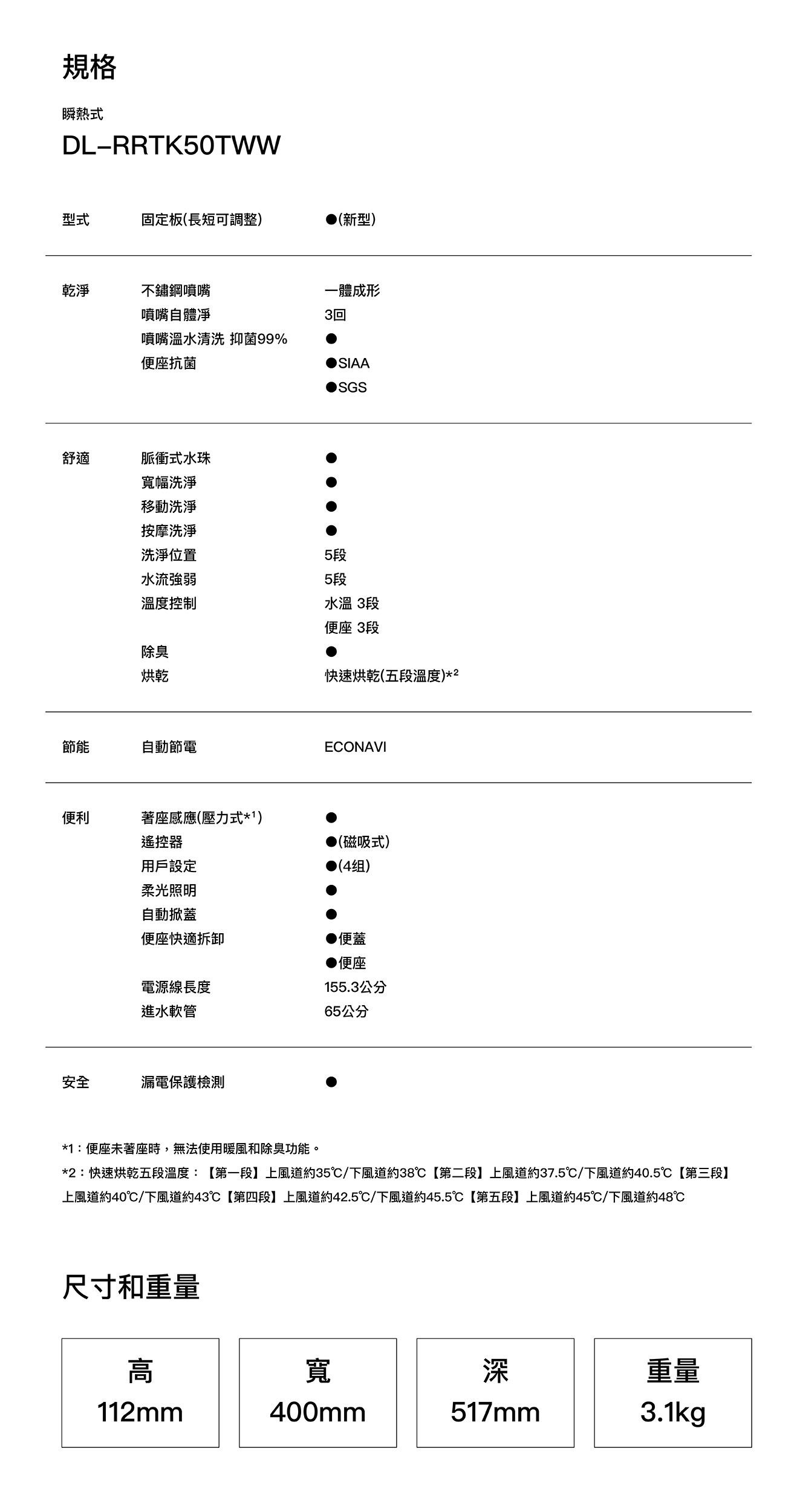 ● 快速烘乾