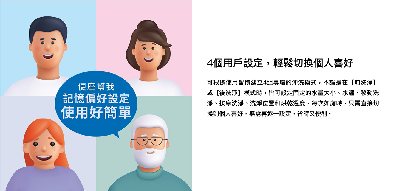 ● 4個用戶設定,輕鬆切換個人喜好