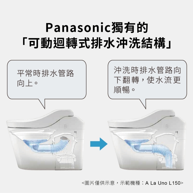 將累積在排水管路的水一次排出的「可動式排水結構」,用少量的水就可確實沖乾淨,同時提升沖水效率,達到金級省水效能,4.0/2.8 L 超省水。