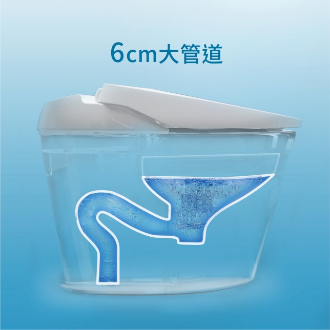 用加大排水管道直徑約6 cm,為一般陶瓷馬桶管道直徑4 cm的1.5倍,更不易堵塞!