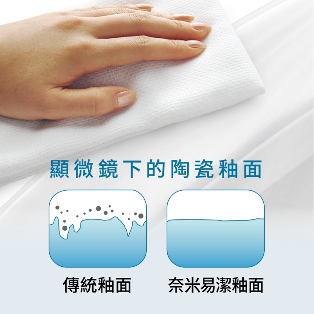 採用奈米易潔釉面,釉料厚度達1.2 mm,表面光滑,使髒污難以附著。