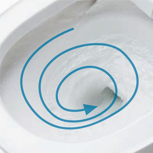 使用具高度清潔力的漩渦式強力水流。以少量且具獨特型式的水流旋轉洗淨,一口氣帶走髒污。