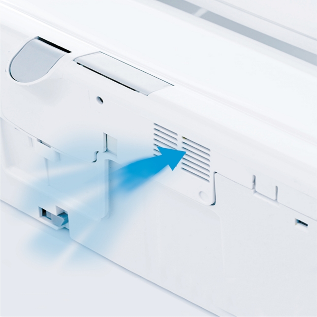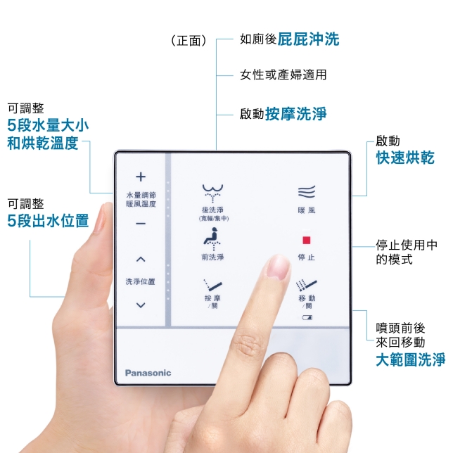 採用遠近雙風道設計,以大風量集中遠風吹落肌膚上的水珠,再搭配寬幅近風烘乾剩餘水氣,烘乾3分鐘除水率達90%,有效減少衛生紙用量,縮短如廁時間。