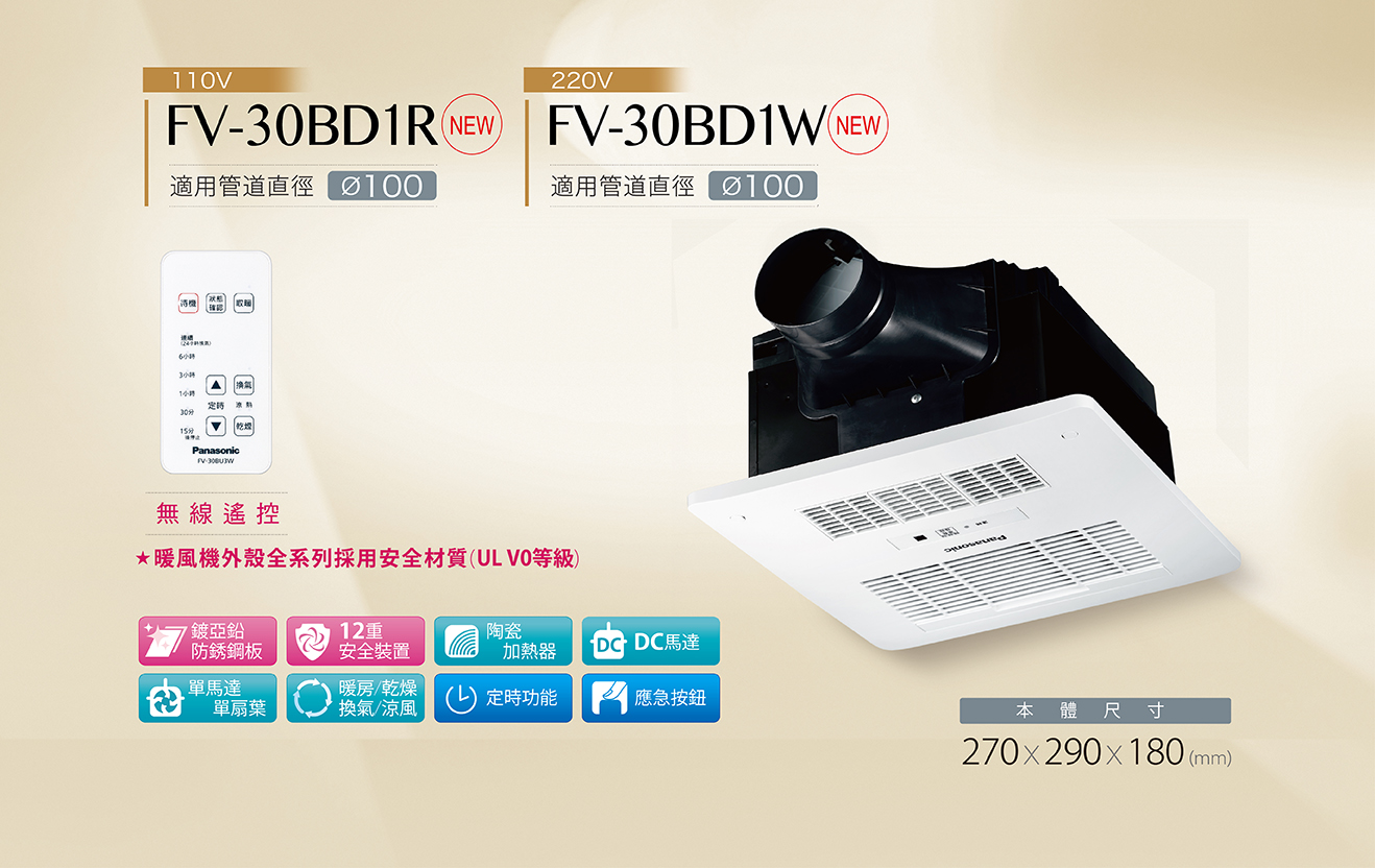 【溫度保險絲】加熱保險絲感知到加熱器組合的溫度超過110°C時,自動斷電。