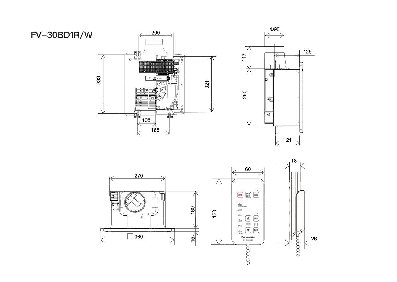 - 天花板安裝孔鄰近窗簾和其它易燃材料時, 離窗簾和其它易燃材料距離200 mm以上。