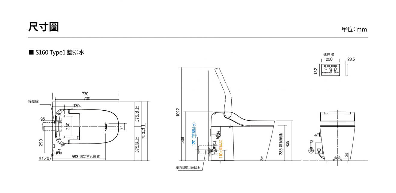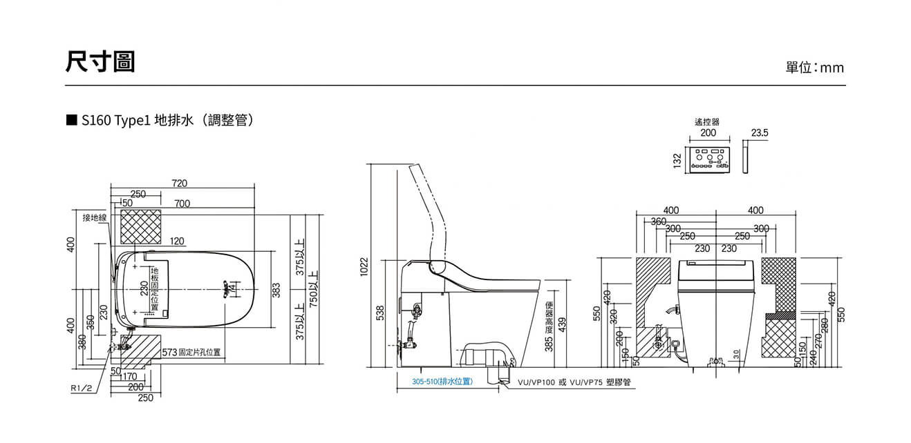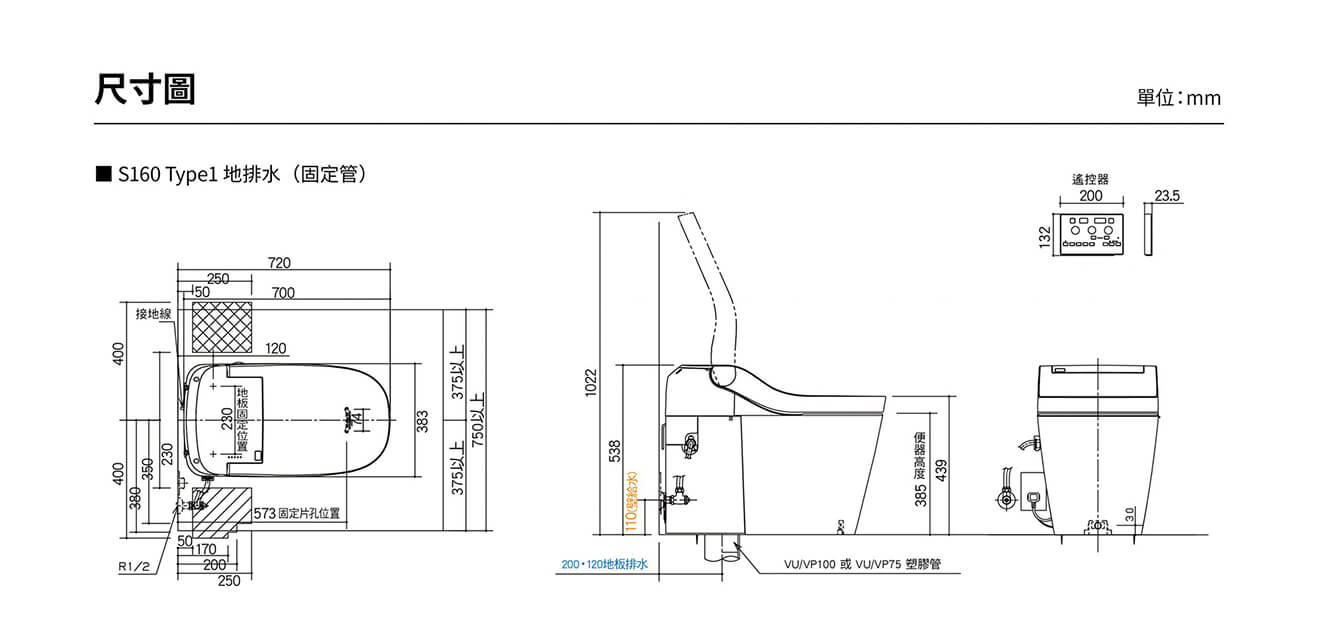 - 本產品便座便器為一體化設計其規格無法與其他品牌共用。