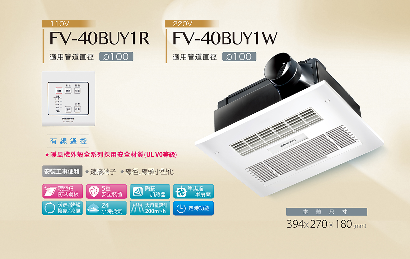 Panasonic 浴室換氣暖風機系列,5重安全裝置、單馬達單扇葉高效換氣 、暖風、涼風、換氣、乾燥、5重安全防護設計、定時功能,輕鬆打造舒適衛浴空間!