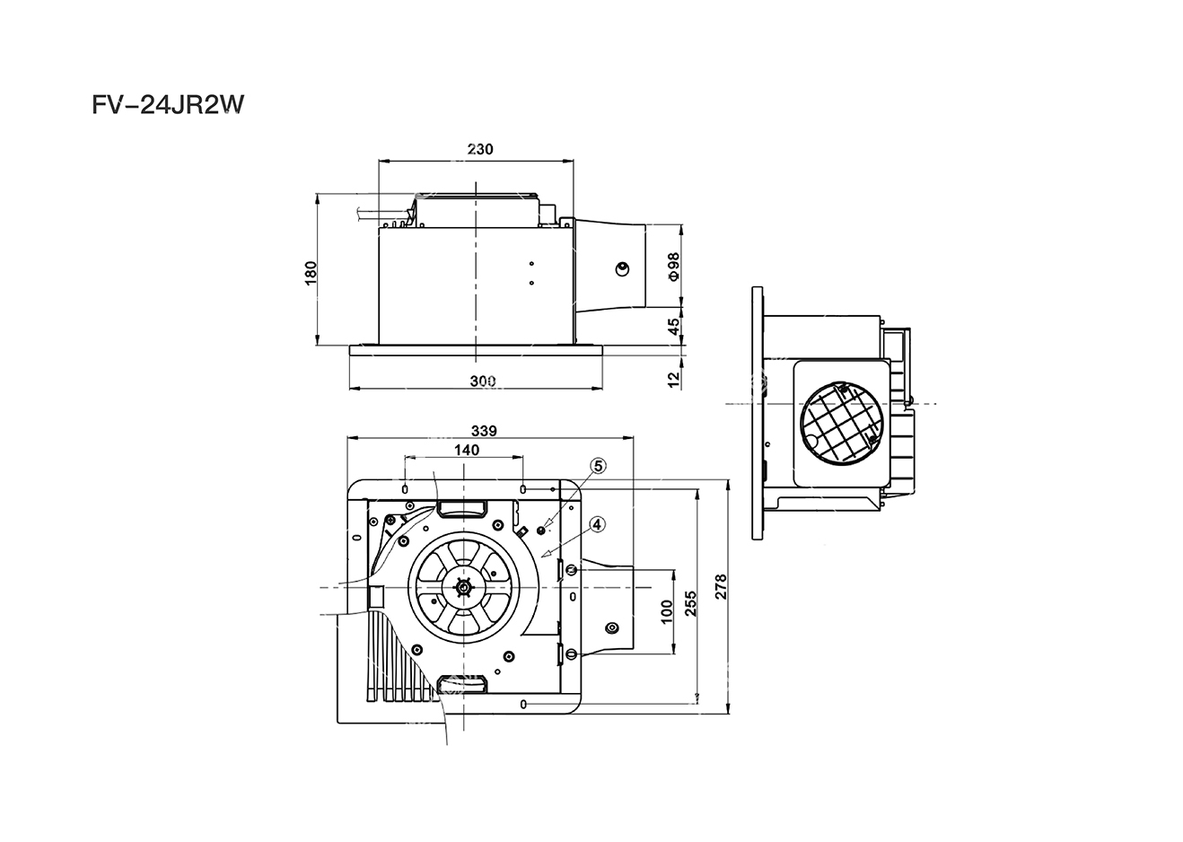 - 天花板安裝孔鄰近窗簾和其它易燃材料時, 離窗簾和其它易燃材料距離200 mm以上。