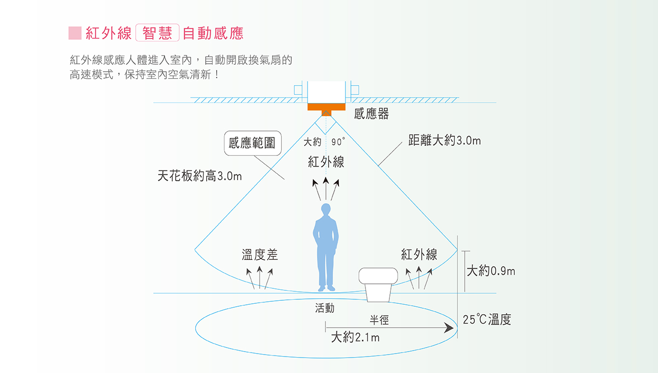 - 安裝完成後,產品最底面至地面的距離必須大於2.3 m。