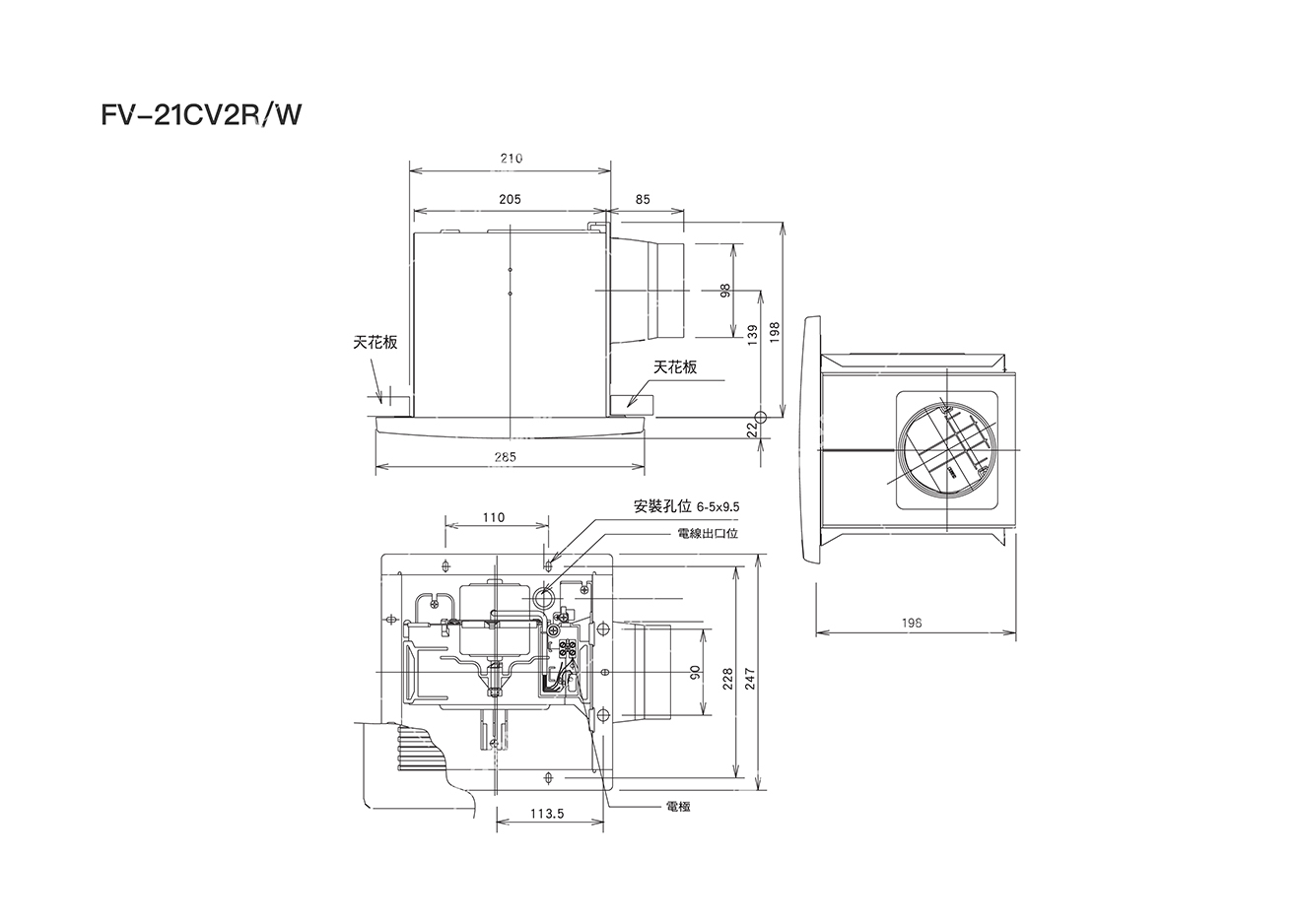 - 天花板安裝孔鄰近窗簾和其它易燃材料時, 離窗簾和其它易燃材料距離200 mm以上。