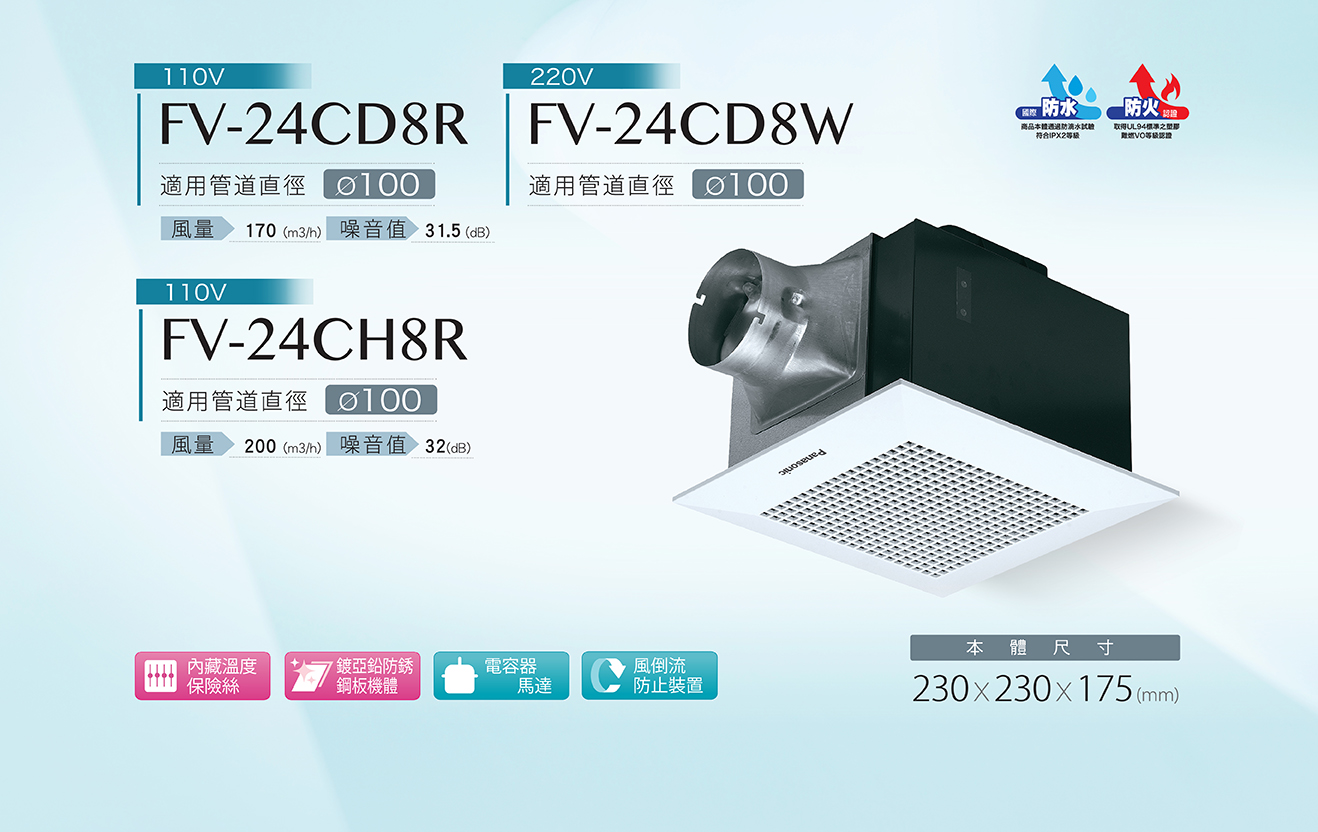 - 對於FV-24CD8W禁止使用額定電壓220 V~ 60 Hz以外的電源。