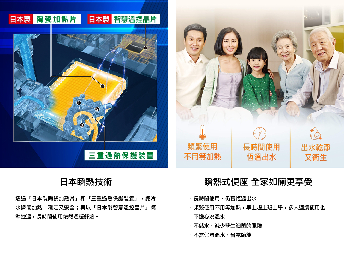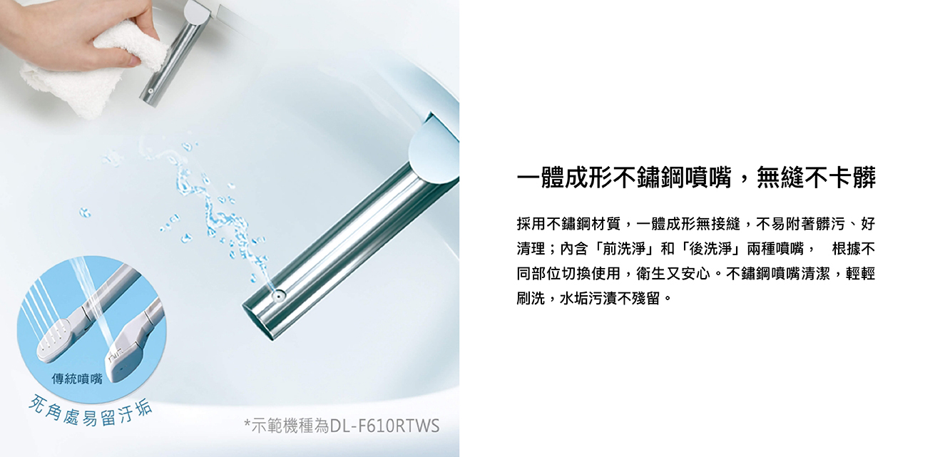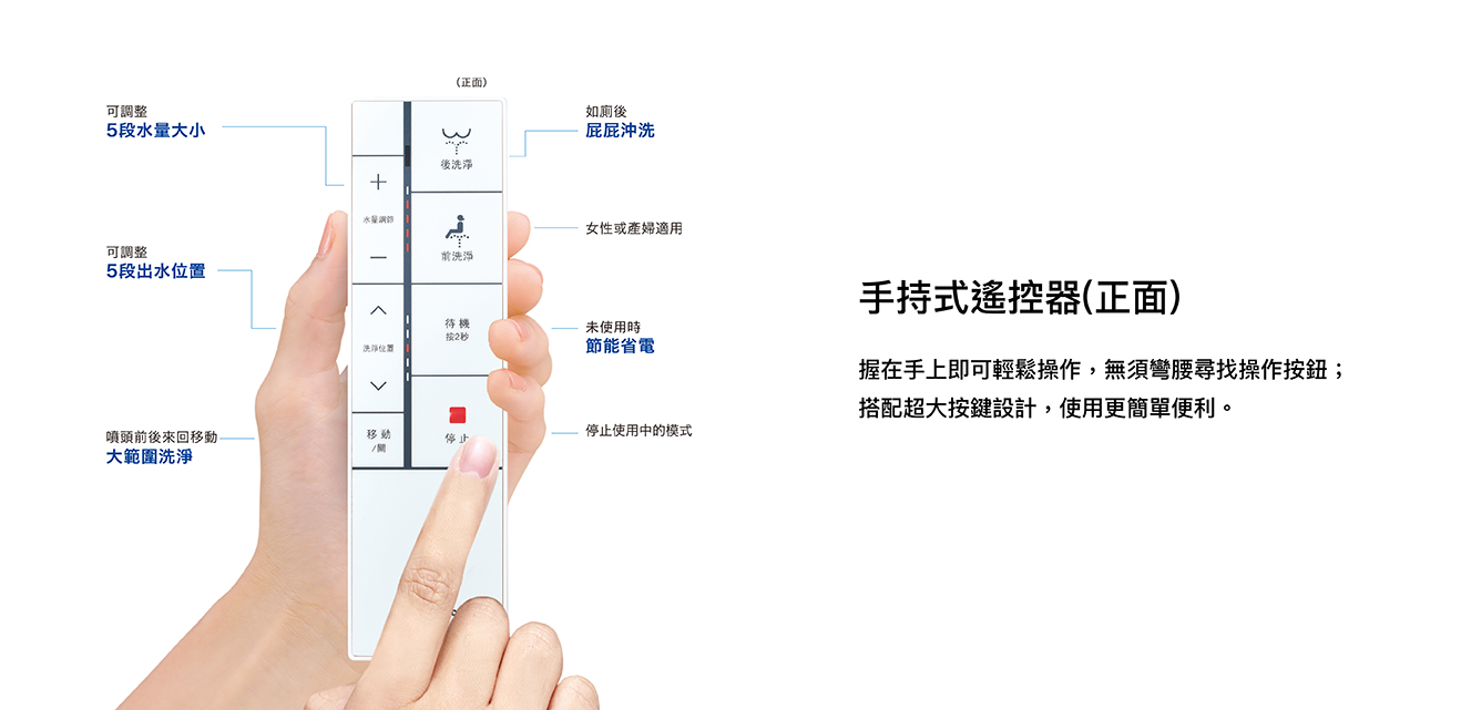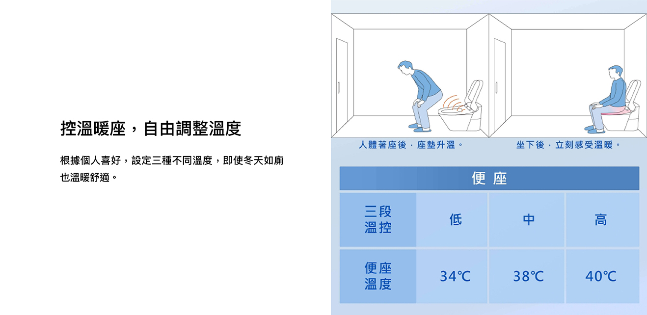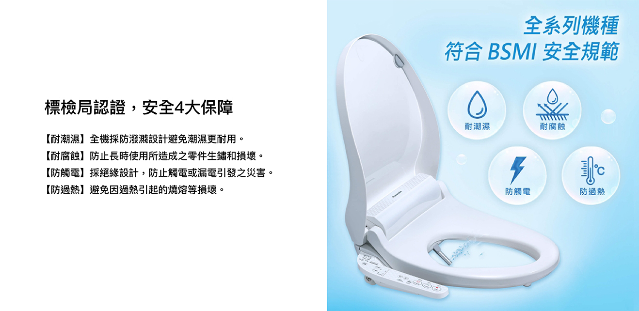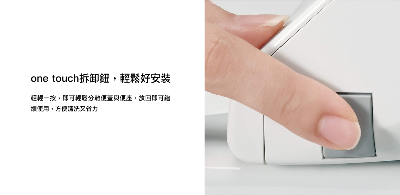 纖薄美型淨時尚 ● 日本瞬熱技術 ● 便座抑菌99% ● 一體成形不鏽鋼噴嘴、噴嘴溫水洗淨 抑菌99% ● 11.2cm薄型化機身,減輕乘坐負擔 ● 手持式遙控器,輕鬆操作 ● 自動除臭