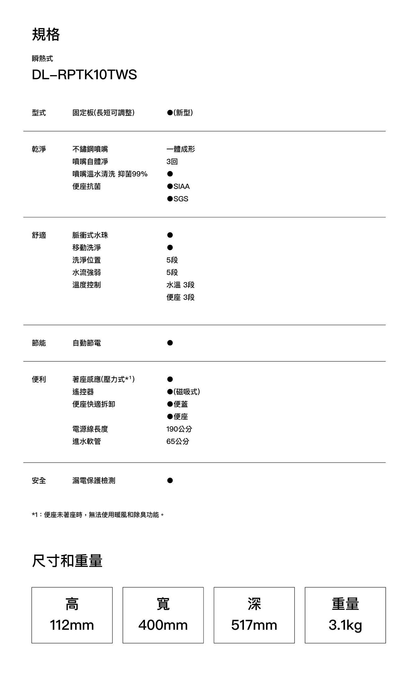纖薄美型淨時尚 ● 日本瞬熱技術 ● 便座抑菌99% ● 一體成形不鏽鋼噴嘴、噴嘴溫水洗淨 抑菌99% ● 11.2cm薄型化機身,減輕乘坐負擔 ● 手持式遙控器,輕鬆操作